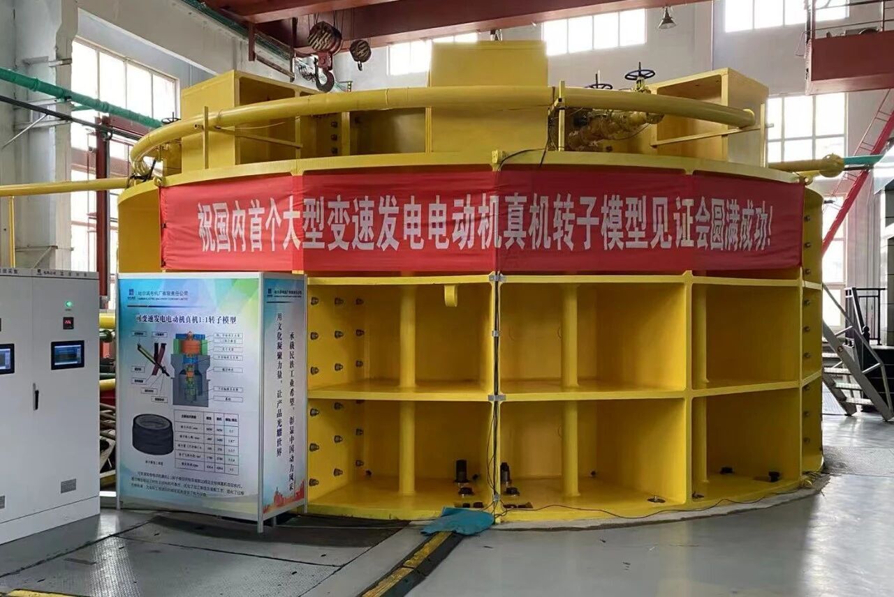 回望足球投注app 变速抽水蓄能机组的研发之路,是几代人勇闯“无人区”的坚守与圆梦的历程。从20世纪90年代开启交流励磁电机理论研究与模型验证,到2016年完成丰宁二期项目模拟设计及转子模型研制;从2021年依托国家重点研发计划,成功研制10兆瓦变速海水蓄能发电电动机样机并完成带负载并网联调试验,再到当前,国内首次完成直径5米级立式1:1真机转子模型试验,世界电压/电流等级最高、难度最大的6.6千伏/万安培级1:1集电系统模型试验,国内首次提出的U/T型螺栓组合式端部固定结构的Bypass旁路通风模型试验等,分别通过行业专家见证和验收。研发团队突破了一个个关键核心技术瓶颈,每一步都凝聚着哈电人的心血与汗水,每一次突破都彰显着大国工匠的执着与坚守,每一项成果都镌刻着自主创新的坚定与豪迈。