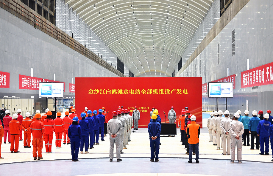 12月20日,在金沙江畔白鹤滩水电站右岸主厂房举办了简短而热烈的金沙江白鹤滩水电站全部机组投产发电仪式。