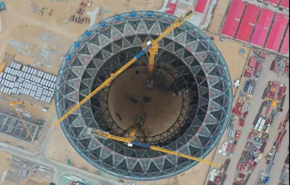 国家能源集团国电电力上海庙公司位于内蒙古自治区鄂尔多斯市鄂托克前旗上海庙能源化工基地,本期工程建设4×1000兆瓦超超临界间接空冷火电机组,为国内目前最大在建火电项目。该项目建设过程中,实现了国际同类型、同容量等级燃煤机组中机组热效率、环保水平最高,供电煤耗、发电水耗指标最低,并实现了多个国内“首创”:即一键启停(启4停2)断点最少的火电厂、首个百万机组四机一控一次建成最大的火电厂、百万间接空冷机组中回热级数(9级)最多的火电厂、空冷机组中背压最低(9千帕)的火力发电厂,且拥有世界首台百万等级钢结构间接空冷塔。