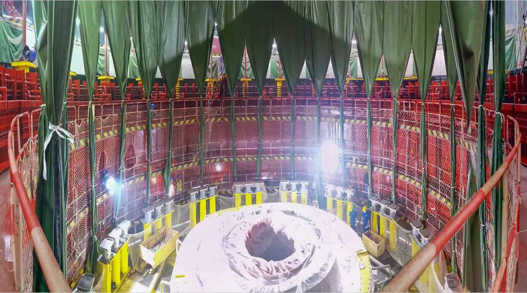 6月13日,白鹤滩水电站右岸首台机组底环顺利吊入机坑,水轮机正式进入安装环节。