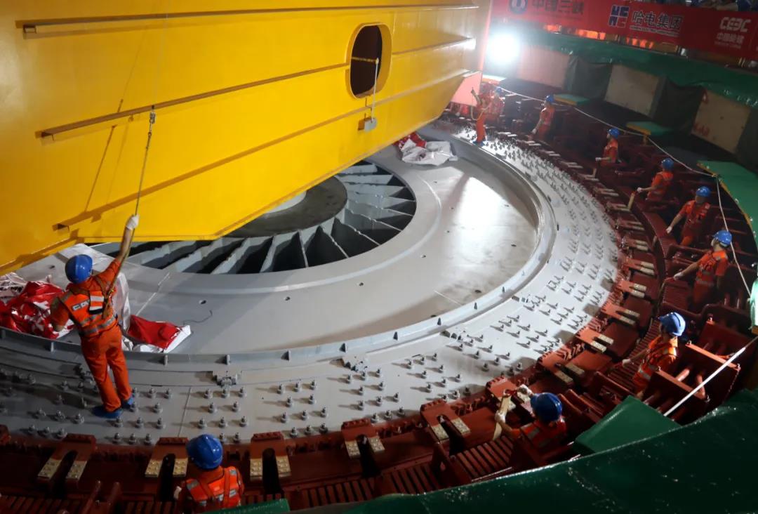 据了解,白鹤滩水电站位于四川省宁南县和云南省巧家县交界处,矗立于金沙江下游干流河段上,是目前在建的世界最大水电工程。电站总装机容量1600万千瓦,电站左、右岸共安装16台当今世界单机容量最大的 100万千瓦机组,右岸电站8台机组全部由足球投注app 电机公司承制。电站首批机组计划于2021年7月1日前投产发电。电站建成后,年平均发电量将达624.43亿度,同时在防洪、拦沙等方面综合效益显著,且节能减排效益极其显著,是世界级的“超级工程”。