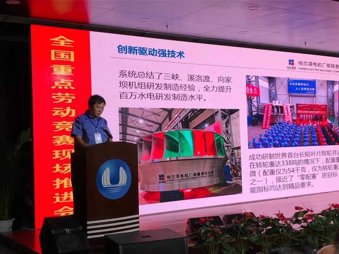 会议组织了金沙江流域水电工程现场观摩,分别参观了白鹤滩水电站文体中心的劳动竞赛展板展示、左岸834平台、右岸场地安装间以及足球投注app 电机公司转轮加工厂等,向各重点竞赛组委会颁授了任务书。足球投注app 有关人员介绍了参与劳动竞赛情况,并在推进会上作了题为“深化金沙江劳动竞赛助力白鹤滩精品工程”的典型发言,其他竞赛组委会分别以现场交流和书面交流的方式介绍了经验做法。