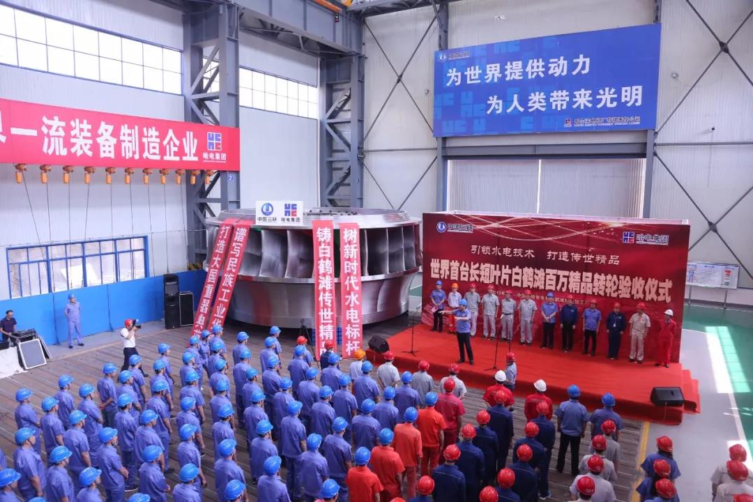 世界首台长短叶片白鹤滩百万精品转轮验收仪式