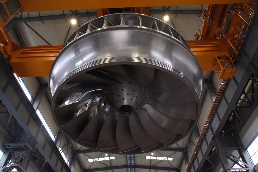 正在吊装的世界单机容量最大100万千瓦水电机组首台长短叶片转轮