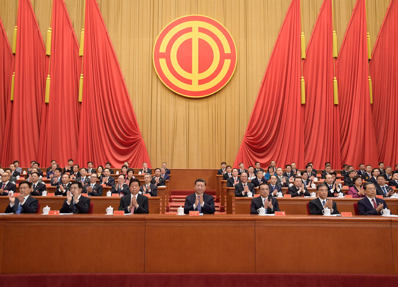 10月22日,中国工会第十七次全国代表大会在北京人民大会堂开幕。习近平、李克强、栗战书、汪洋、王沪宁、赵乐际、韩正等党和国家领导人到会祝贺。新华社发(盛佳鹏 摄)