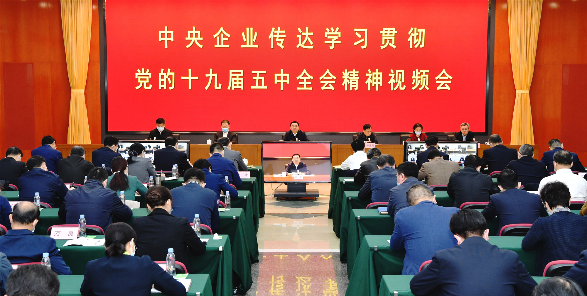 会议要求,要把学习贯彻党的五中全会精神作为当前和今后一个时期的一项重大政治任务,加强领导、精心组织,迅速掀起学习贯彻热潮。要抓好学习培训,坚持原原本本学、融会贯通学、领导带头学、创新方式学;抓好宣传引导,深入开展集中宣讲,全面宣传会议精神,统筹运用宣传资源,推动全会精神进企业、进班组、进职工;抓好重大问题研究,聚焦全局性长远性问题开展调研、加强研讨,更好推进国资央企“十四五”规划编制;抓好当前重点工作,稳增长、抓改革、促创新、强党建、防风险,为全面建成小康社会、确保“十三五”收好官、“十四五”开好局作出国资央企重要贡献。