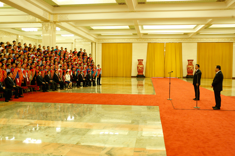 中央企业先进集体和劳动模范表彰大会21日在人民大会堂举行,国务委员王勇出席大会并会见先进集体和劳动模范代表。国资委党委书记、主任郝鹏出席大会并讲话。国务院副秘书长孟扬出席会议。人力资源社会保障部副部长、党组成员张义全宣读表彰决定。国资委副主任、党委委员任洪斌主持会议,国资委党委委员出席会议。