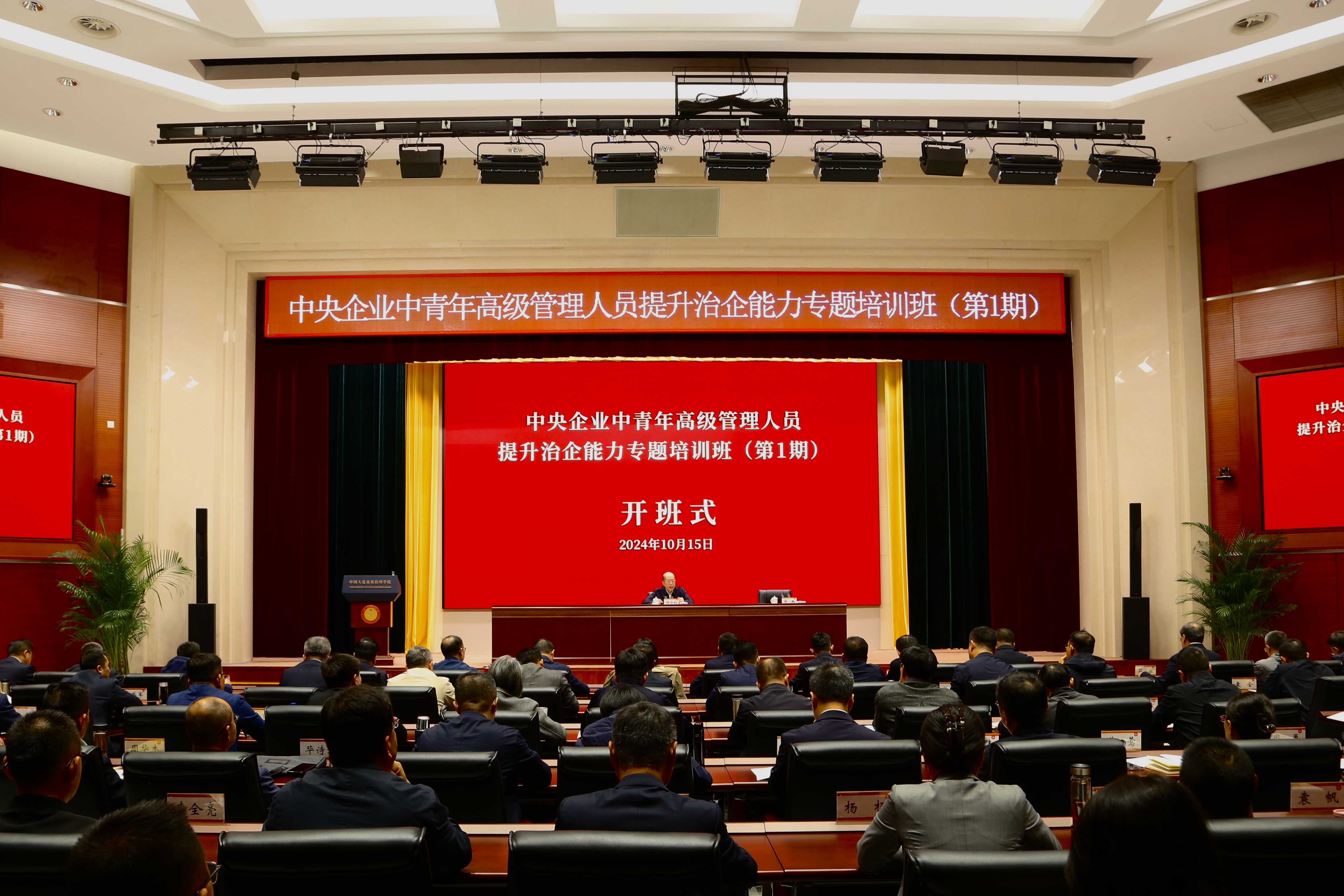 10月15日,中央企业中青年高级管理人员提升治企能力专题培训班(第1期)在中国大连高级经理学院开班。国务院国资委党委委员、副主任,中国大连高级经理学院第一副院长、党委书记谭作钧出席开班式并讲话,学院常务副院长、党委副书记薛徽主持开班式。中管金融企业、中管企业总部部门或二级单位正职,共65名学员参加开班式。