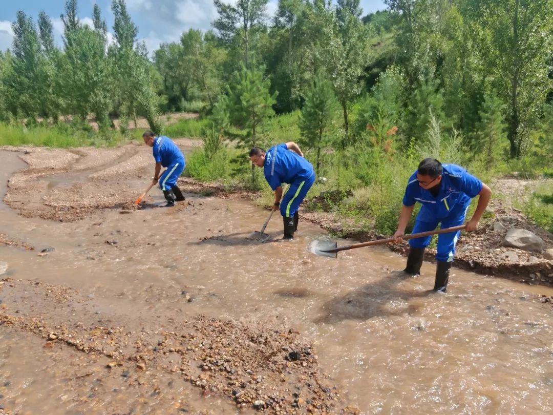 受持续强降雨及大风影响,张家口市张北县部分地区发生重大气象灾害,中国节能所属风电公司洗马林10万千瓦风电场附近路段出现山体滑坡、塌方,落石阻断道路,严重影响风场运维及属地居民出行。洗马林风电场迅速派出十名运维人员,在大雨暂停后清理被阻断的道路及积水积沙积石的沟道,保障村民出行安全;同时持续做好强降雨天气下的设备巡检与维护,确保抗洪救灾用电稳定。