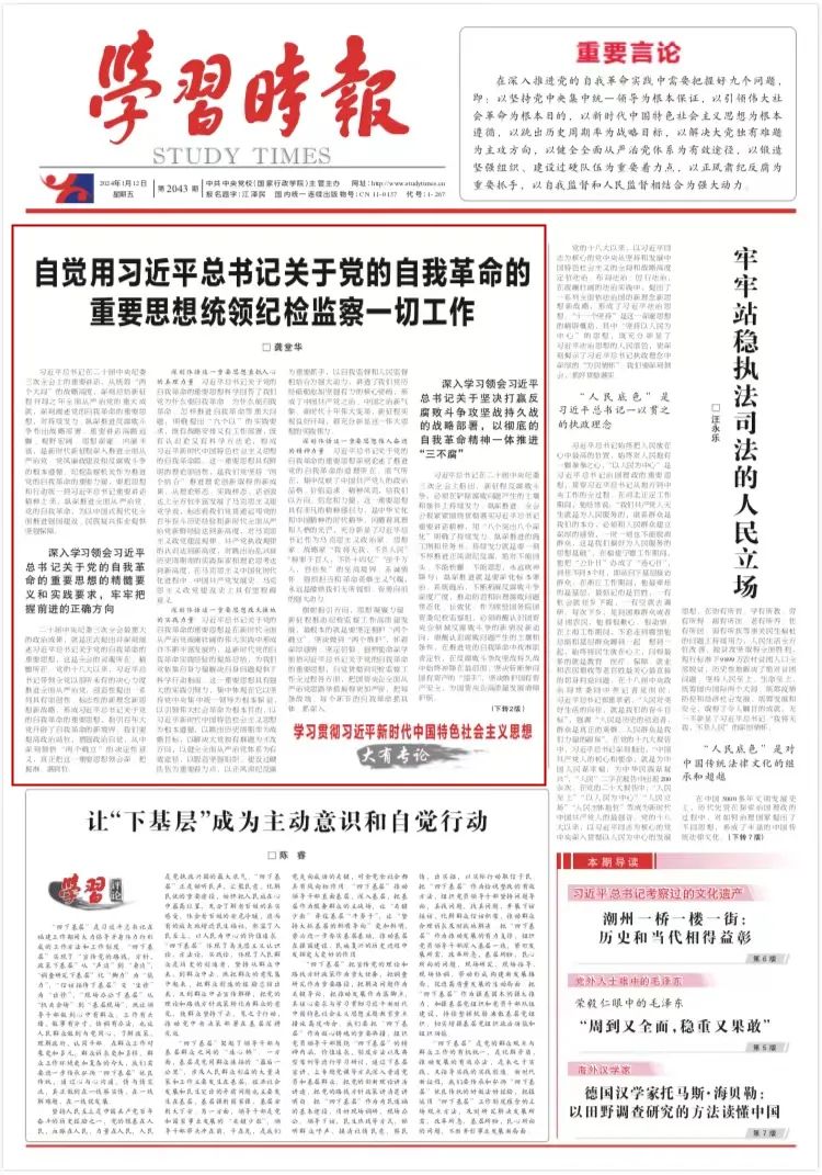 习近平总书记在二十届中央纪委三次全会上的重要讲话,从统筹“两个大局”的战略高度,深刻总结新征程开局之年全面从严治党的重大成就,深刻阐述党的自我革命的重要思想,对持续发力、纵深推进反腐败斗争作出战略部署。重要讲话高瞻远瞩、视野宏阔、思想深邃、内涵丰富,是新时代新征程深入推进全面从严治党、党风廉政建设和反腐败斗争的根本遵循。纪检监察机关作为推进党的自我革命的重要力量,要把思想和行动统一到习近平总书记重要讲话精神上来,纵深推进全面从严治党、党的自我革命,为以中国式现代化全面推进强国建设、民族复兴伟业提供坚强保障。