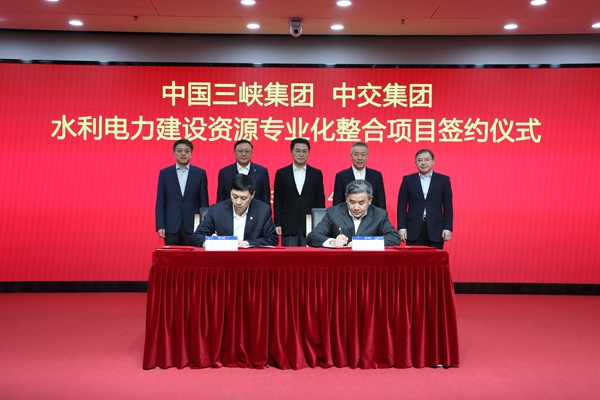 国资委有关厅局、中国三峡集团和中交集团主要负责同志参加仪式。