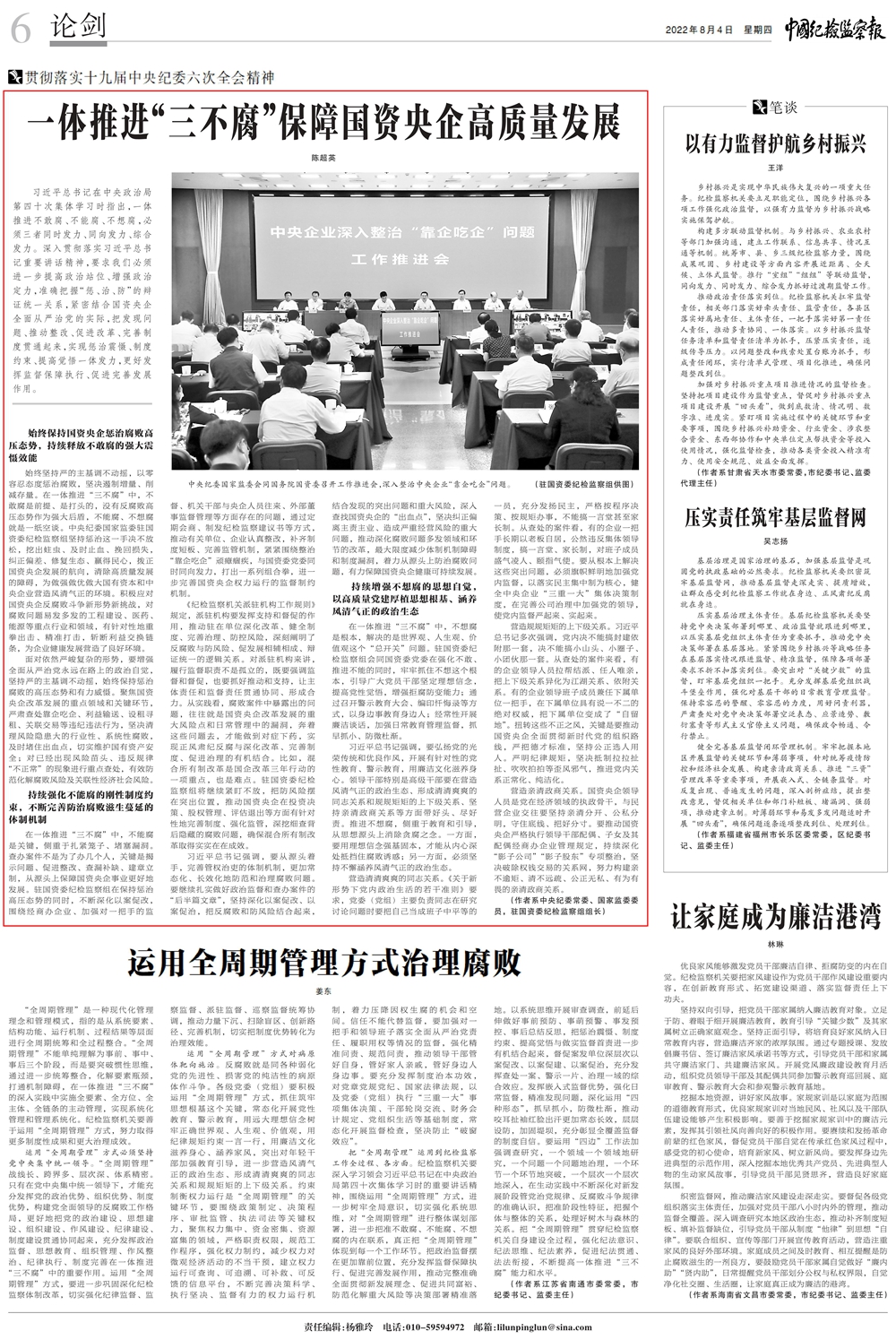 始终保持国资央企惩治腐败高压态势,持续释放不敢腐的强大震慑效能