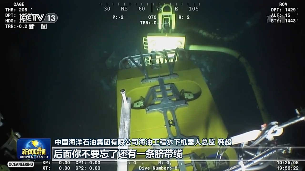 中国海洋石油集团有限公司海油工程水下机器人总监 韩超:你的手脚要并用,然后你要在抓的同时,后面你不要忘了还有一条脐带缆是连着你的。你再稍微一用力,那通讯要不然断了,要不然就绝缘报警。