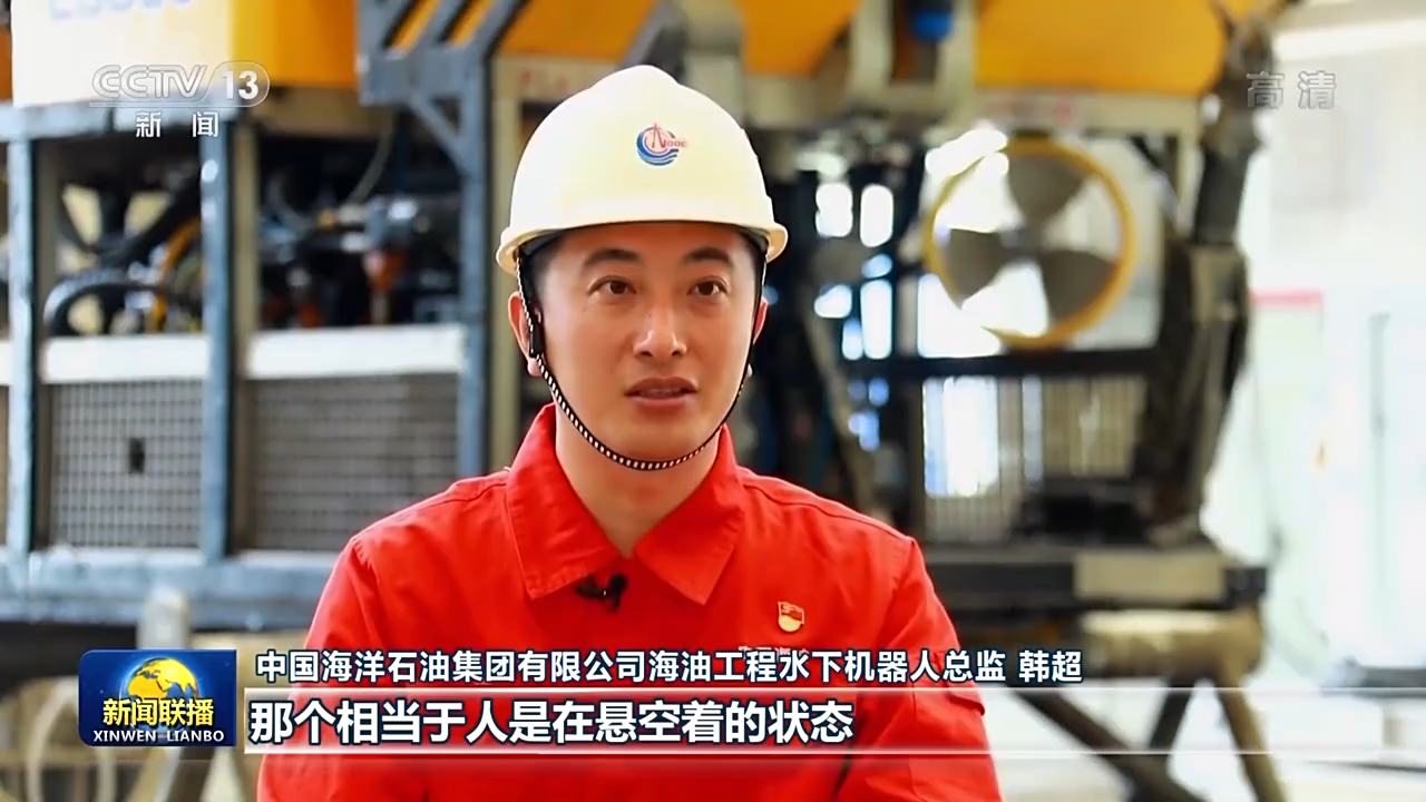 中国海洋石油集团有限公司海油工程水下机器人总监 韩超:水下面是有水流的,不像我们在陆地。陆地上你有支撑,那个相当于人是在悬空着的状态。
