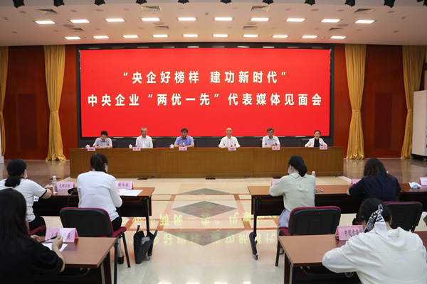 7月23日,国资委党委举办“央企好榜样 建功新时代”中央企业“两优一先”代表媒体见面会。全国优秀共产党员,中国石油所属润滑油公司企业一级技术专家伏喜胜;中央企业优秀共产党员,中核集团“华龙一号”总设计师、首席专家,中国核电工程有限公司总工程师邢继;中央企业优秀共产党员,航空工业集团所属沈阳飞机工业(集团)有限公司数控加工厂班长王刚;全国优秀党务工作者,中国电建党委群众工作部副主任、团委书记贺宜;全国先进基层党组织,中国三峡集团白鹤滩工程建设部党委书记何炜等五位获得全国“两优一先”、中央企业“两优一先”的优秀个人、先进集体代表出席见面会并回答记者提问。