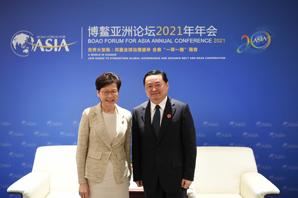 4月20日,国务院国资委党委书记、主任郝鹏在出席博鳌亚洲论坛2021年年会期间会见了香港特别行政区行政长官林郑月娥。双方就进一步加强合作,高质量共建“一带一路”,推动国资央企助力香港继续抓好疫情防控、保持经济社会繁荣稳定等进行了深入交流。国务院国资委党委委员、秘书长彭华岗参加会见。