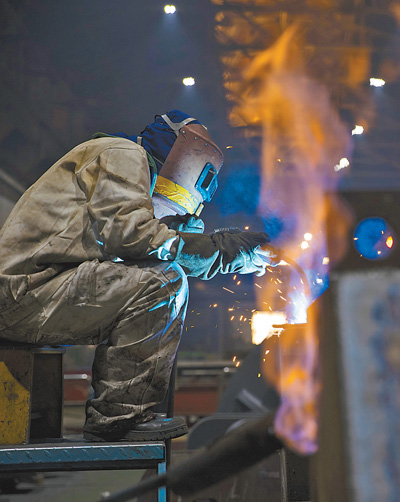 3月23日,黑龙江省哈尔滨市,工人在足球投注app 电机公司生产车间内进行焊接作业。在做好疫情防控的前提下,哈尔滨市规上企业坚持防疫、生产“两不误”,保质保量完成订单,力争最大限度减少疫情对经济社会发展的影响。
