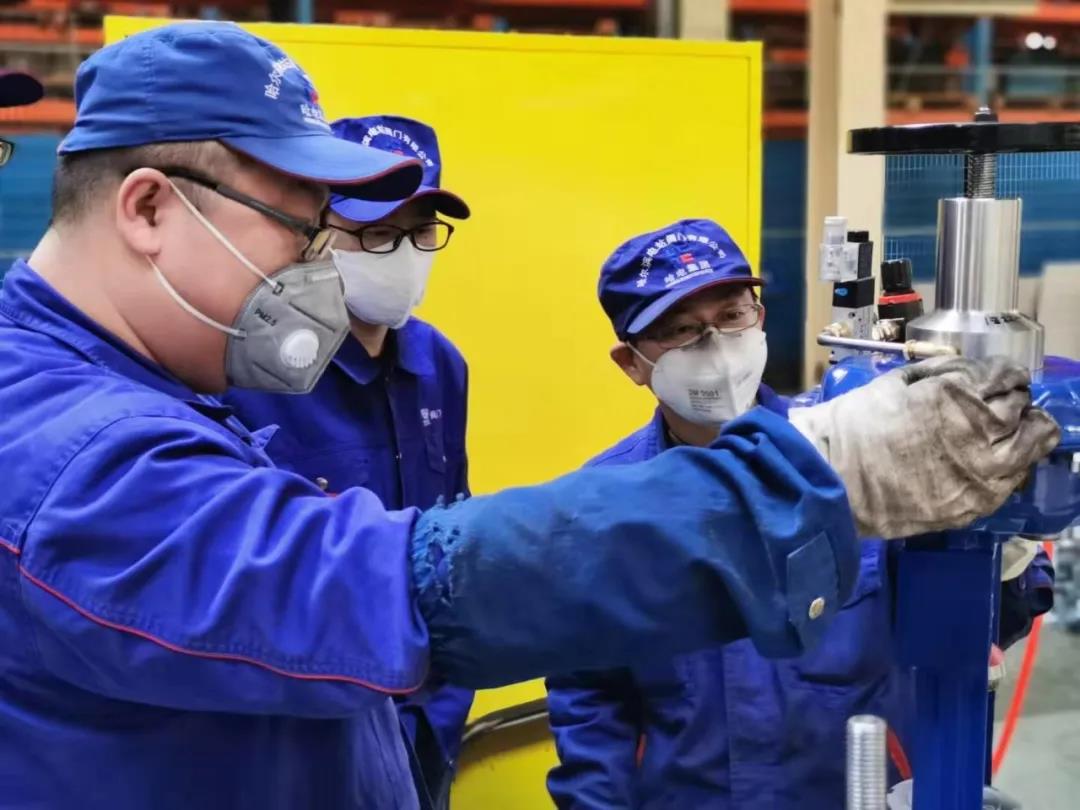 在做好疫情防控工作的同时,为保障公司项目顺利推进,阀门公司上下一心,同心协力,克服了外地员工无法返哈人手急缺的困难,尽最大努力降低疫情影响,按期完成了太锅大庆庆翔、肇东华庆等5个公司重点项目调节阀的技术准备工作,二十余份技术协议的网络签署工作,以及止回阀密封垫优化、阀门密封圈模块化等质量改进工作。同时,他们还在生产一线争分夺秒进行着MSR先导式安全阀一次阀试验,为产品中控熔盐蝶阀顺利供货做好技术准备。