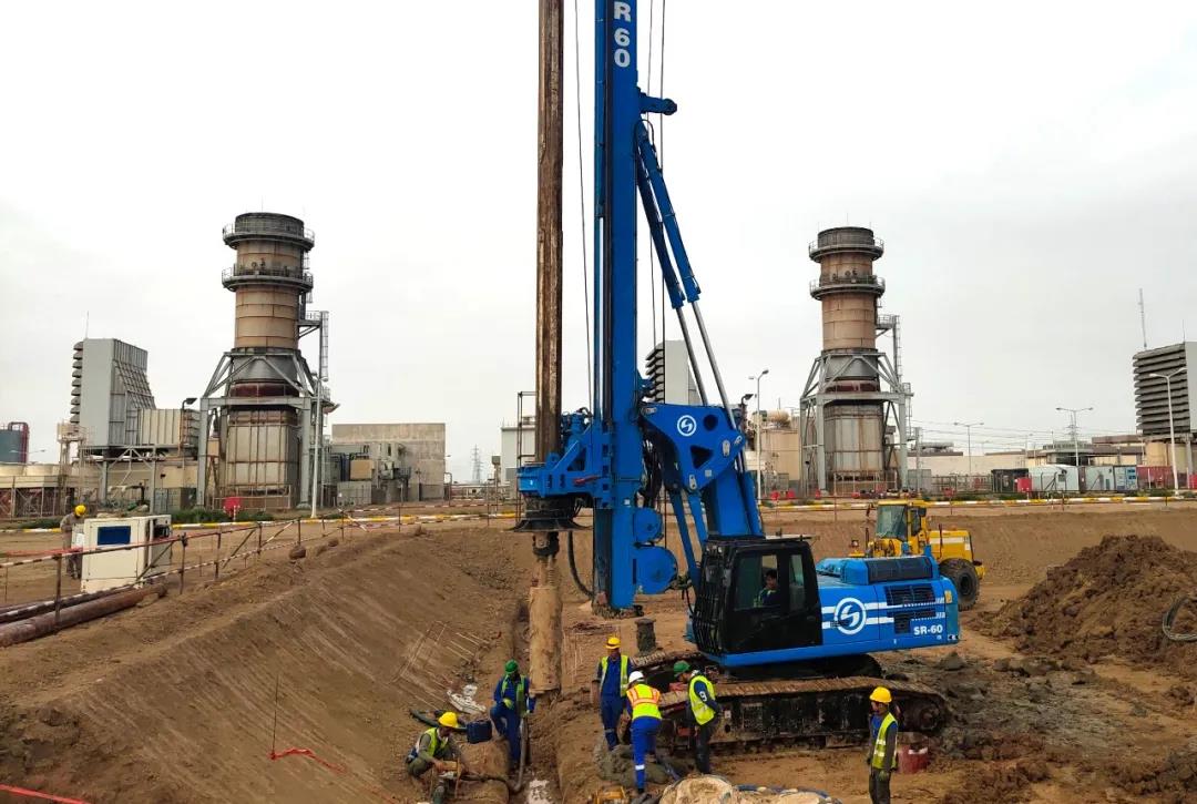 施工现场进行旋挖钻孔作业。