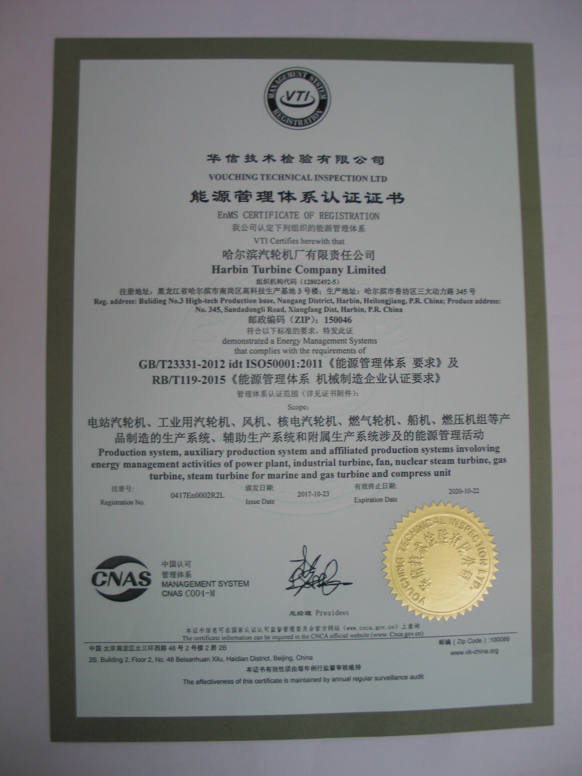 日前,汽轮机公司获得国内首家能源管理体系(EnMS)带有“CNAS”环球能源体系认证标志证书,标志着公司生产项目的能源管理工作,符合国际能源管理体系的审核标准。