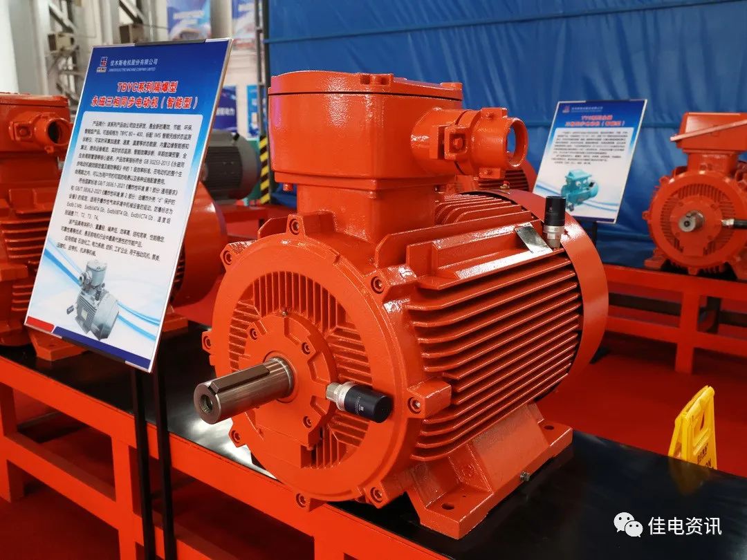 本次发布会展出的TBYC系列高效率隔爆型永磁三相同步电动机(智能型)、TYC系列永磁三相同步电动机(智能型)产品,依靠永磁体所提供的磁能替代了传统电机电励磁产生的磁能,具备电机损耗低、运行可靠性高的特点。在负载较低时,产品仍可保持较高的运行效率和功率因数,解决了机械设备在低负荷时能耗消耗大的问题。其中部分规格可配备智能监测终端产品,可实时采集加速度、速度、温度等状态数据,内置边缘智能感知算法,可提供设备概览、实时状态监测、智能故障诊断、早期故障预警、全生命周期管理等核心服务。同时,产品效率指标能够满足1级能效要求,在电动机的整个生命周期内,可以为用户节约可观的电费以及各种设施配套费用,是工信部“能效之星”推荐产品,可应用于石油化工、电力系统、纺织、工矿企业以及拖动风机、泵类等机械。