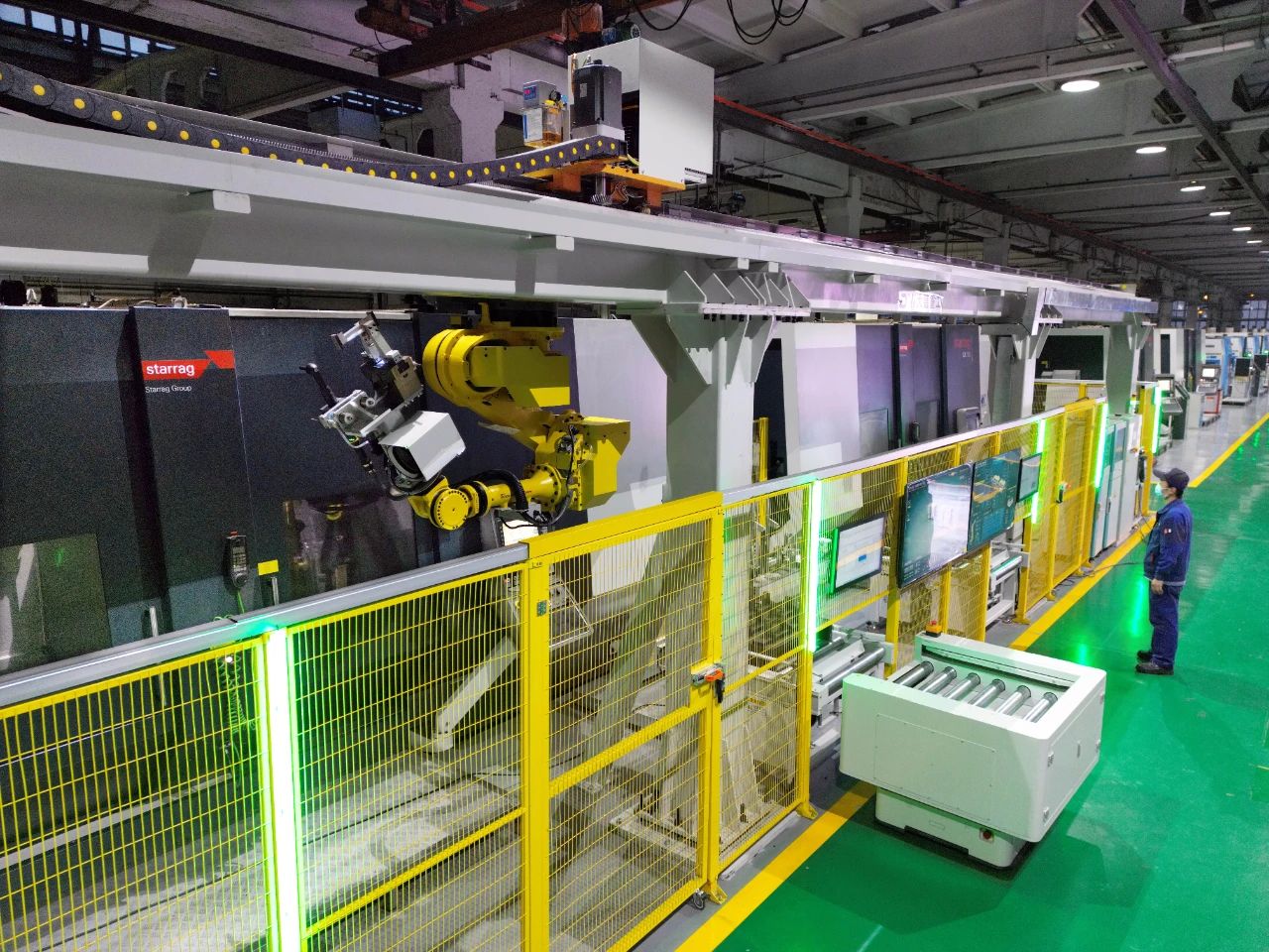 此次上线的示范单元以小五轴综合加工中心为主体,集成工业机器人、AGV、5G传输、在线测量、柔性预调定位、机器视觉等先进数字装备及数字技术,运用了加工级数字孪生、智慧仓储物流、柔性过程管控、自动化决策分析等多个智慧单元,全面验证了公司叶片全序全流程自动化加工产线的关键核心技术。