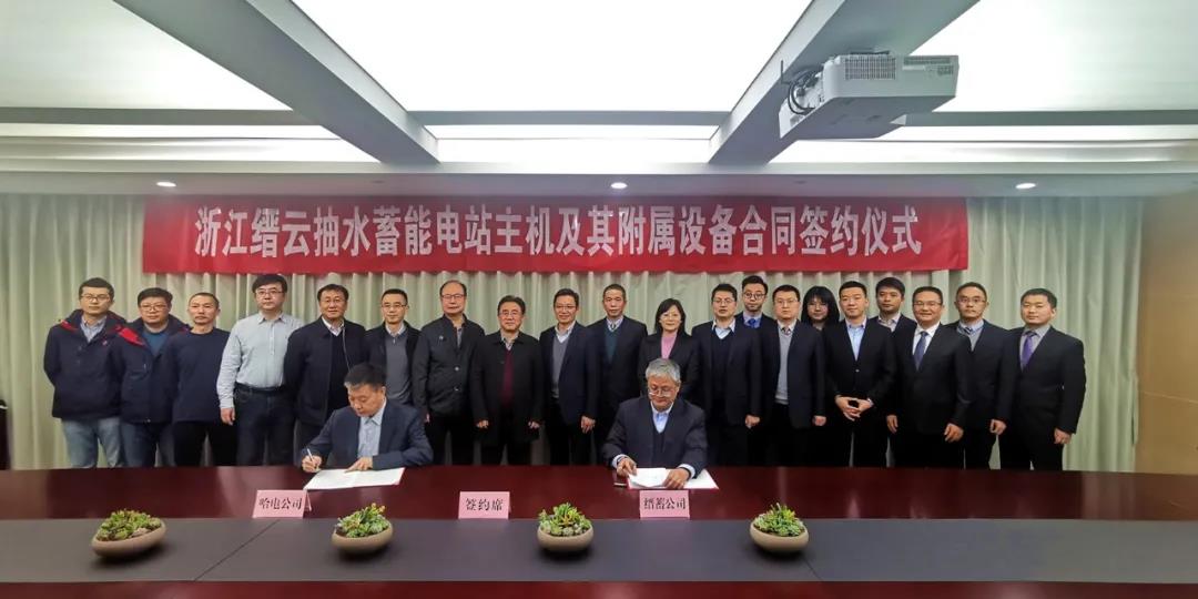 3月4日,足球投注app 电机公司与浙江缙云抽水蓄能有限公司在浙江杭州完成项目合同谈判,哈电电机党委副书记、总经理刘玉强,浙江缙云抽水蓄能有限公司党委书记、董事长章品勋分别代表双方公司完成项目签约,电站全部6台单机容量300兆瓦抽水蓄能机组及其附属设备大成套项目被哈电电机囊括。