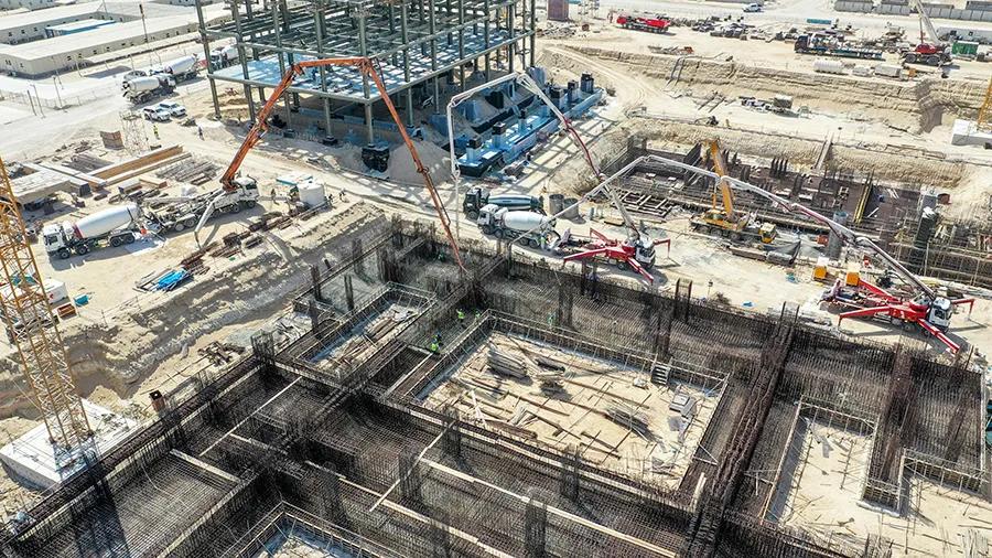 国际公司承建的迪拜哈斯彦4×600MW清洁燃煤电站项目4号机组迎来第一方基础混凝土浇筑重大节点。哈斯彦项目4号锅炉基础1区底板浇筑工作历时11小时连续作业,共计浇筑1103方混凝土,于当地时间10月2日19时5分顺利完成,为后续哈斯彦项目4号锅炉基础施工及锅炉钢结构吊装工作奠定了坚实基础。