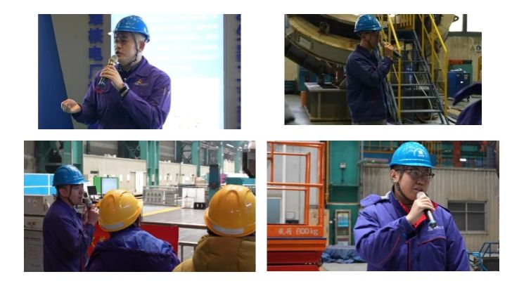 现场参观时,丁道复介绍了公司历史和典型产品,生产制造部团总支第一支部书记高靖博介绍了焊接设备和焊接后的检验处理工作,生产制造部团总支机加团支部书记刘方舟介绍了机加设备和加工产品,项目联合团支部书记韩兆明介绍了三门4号蒸汽发生器的特点和功能。