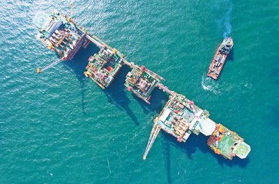 渤海油田海上连体平台。 闫超 摄(人民视觉)
