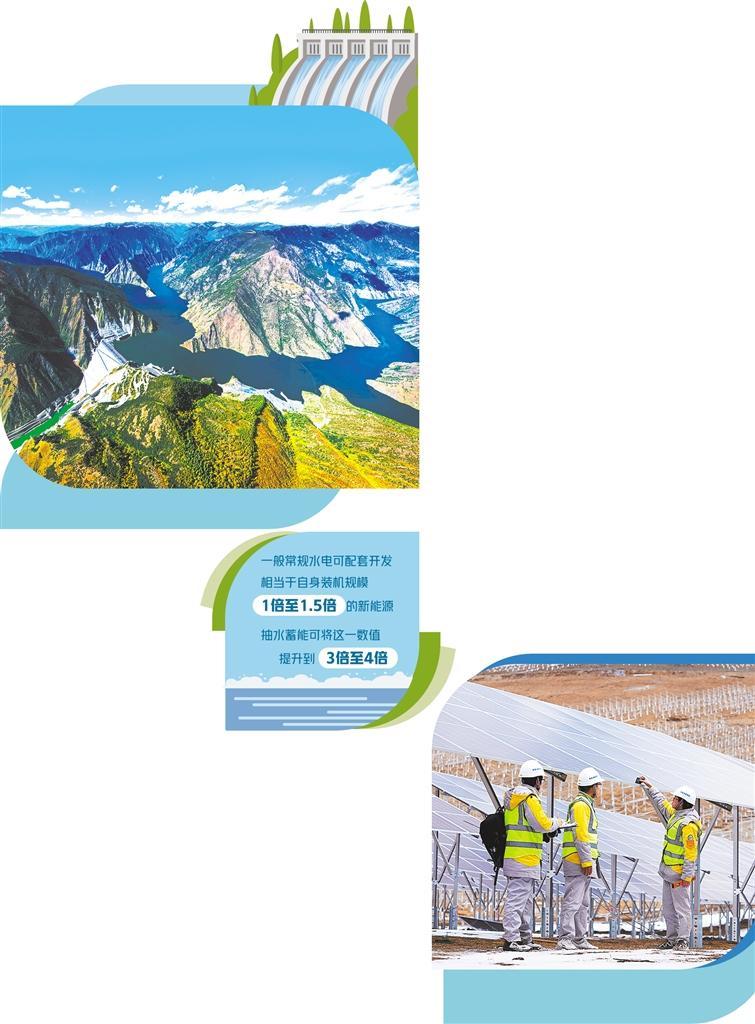 水电像一根强有力的杠杆,撬动更多的新能源开发。“一般常规水电可配套开发相当于自身装机规模1倍至1.5倍的新能源,抽水蓄能可将这一数值提升到3倍至4倍。”国投集团雅砻江公司总经理郭绪元说,雅砻江干流常规水电技术可开发容量约3000万千瓦,水库总库容大,抽水蓄能站点众多,调节性能优异,流域光伏风电资源丰富,可形成总规模超1亿千瓦的水风光互补绿色清洁可再生能源示范基地。