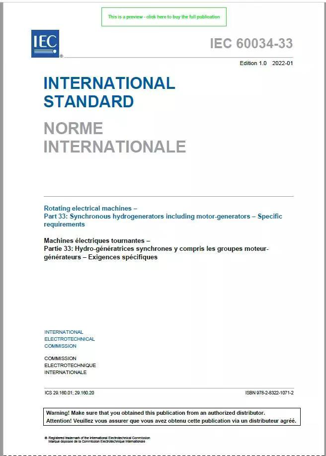 技术人员牵头制定的国际标准IEC60034-33"同步水轮发电机(发电电动机)基本技术要求"正式发布实施。这是我国旋转电机领域首次主导制定的国际标准,也是我国国际标准化工作的又一个重大突破。