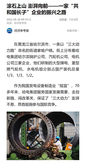 探索自主创新走出“换挡加速”新路》《“大国重器”企业转型面临多重挑战》等文章。经济参考报专版刊发《滚石上山 澎湃向前——一家“共和国长子”企业的振兴之路》阅读量近140万。