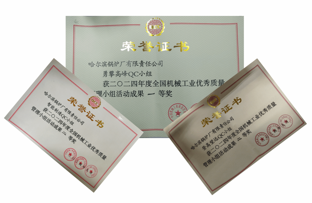 2024年9月,“全国机械工业第43次质量管理成果、质量品牌故事交流”活动在山西太原举办。哈电锅炉工程设计中心勇攀高峰QC小组荣获2024年度全国机械工业优秀质量管理小组活动成果一等奖,工艺部智能制造QC小组和联箱分厂登高望远QC小组荣获2024年度全国机械工业优秀质量管理小组活动成果二等奖。