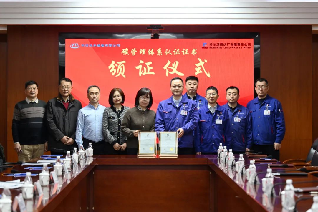 在此次颁发证书之前,华信公司对哈电锅炉进行了为期五天的审核,对公司及下属分子公司各类产品生产制造所涉及的碳管理活动进行了资料查询、数据核算和现场查看。最终,经华信公司评审组评审,一致认为哈电锅炉各项指标均符合碳管理体系标准要求。哈电锅炉成功成为锅炉行业内首家通过碳管理体系认证的企业。
