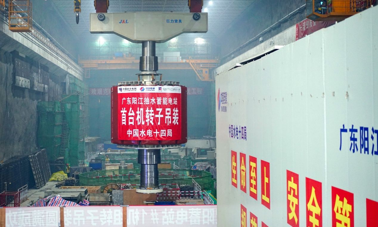 公司研制的阳江抽水蓄能项目首台转子成功吊装
