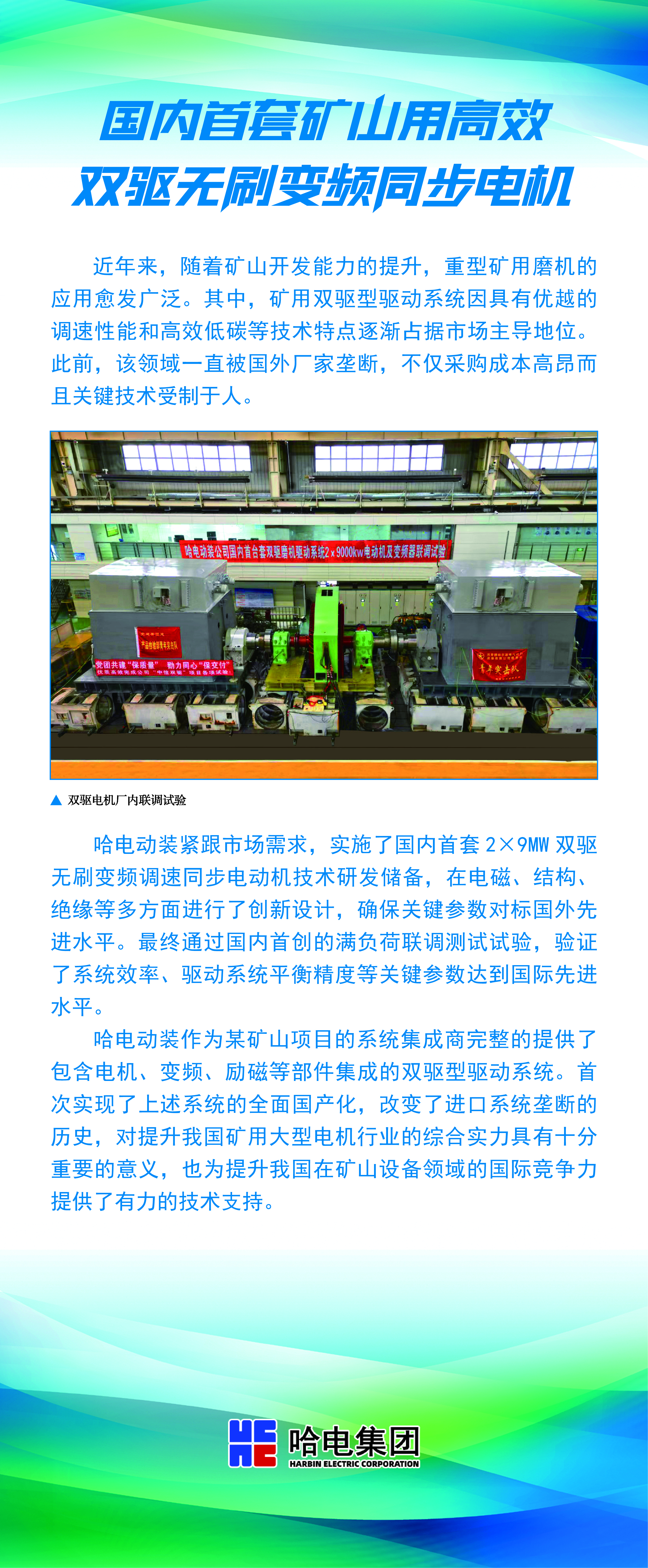 国内首套矿山用高效双驱无刷变频同步电机