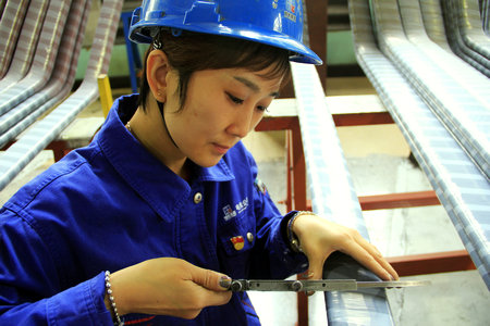 优秀共产党员、电机公司巾帼十佳标兵,水电定子绝缘班班长徐鑫。身材单薄瘦弱的她,在工作中,却总是不甘示弱,对待每一项工作都精益求精,掌握一手精湛的操作技能。在白鹤滩定子线棒生产技术准备过程中,她积极践行集团公司“提质增效党员先行”党建载体工程要求,以公司党内主题实践活动为载体,带领班组党员刻苦钻研创新,设计制作了专用装置,并在真机试验线棒生产中应用,为白鹤滩定子线棒质量提升,打造精品工程奠定了坚实的基础。对待班组同事,她更是赋予了超强的耐心,这也使得同事们之间关系和谐融洽,形成了“快乐工作、快乐生活”的良好工作氛围。