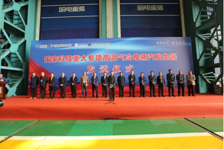 党委书记、董事长斯泽夫与中国华能党组成员、副总经理叶向东共同为“大国重器”揭幕,各方代表分别致辞,对国家科技重大专项全球首台高温气冷堆蒸汽发生器研制成功并顺利通过验收表示祝贺。