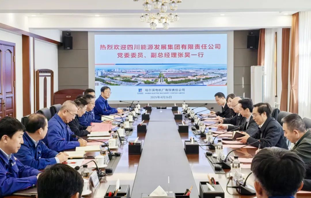 4月26日,足球投注app 总经理、党委副书记黄伟热情接待了四川能源发展集团有限责任公司党委委员、副总经理张昊一行,并举行会谈。双方就进一步深化合作关系、加快科技创新、培育发展新质生产力、更好服务国家战略需要等方面进行深入交流。哈电股份副总裁王贵,公司办公室,以及电机公司有关负责同志参加上述活动。
